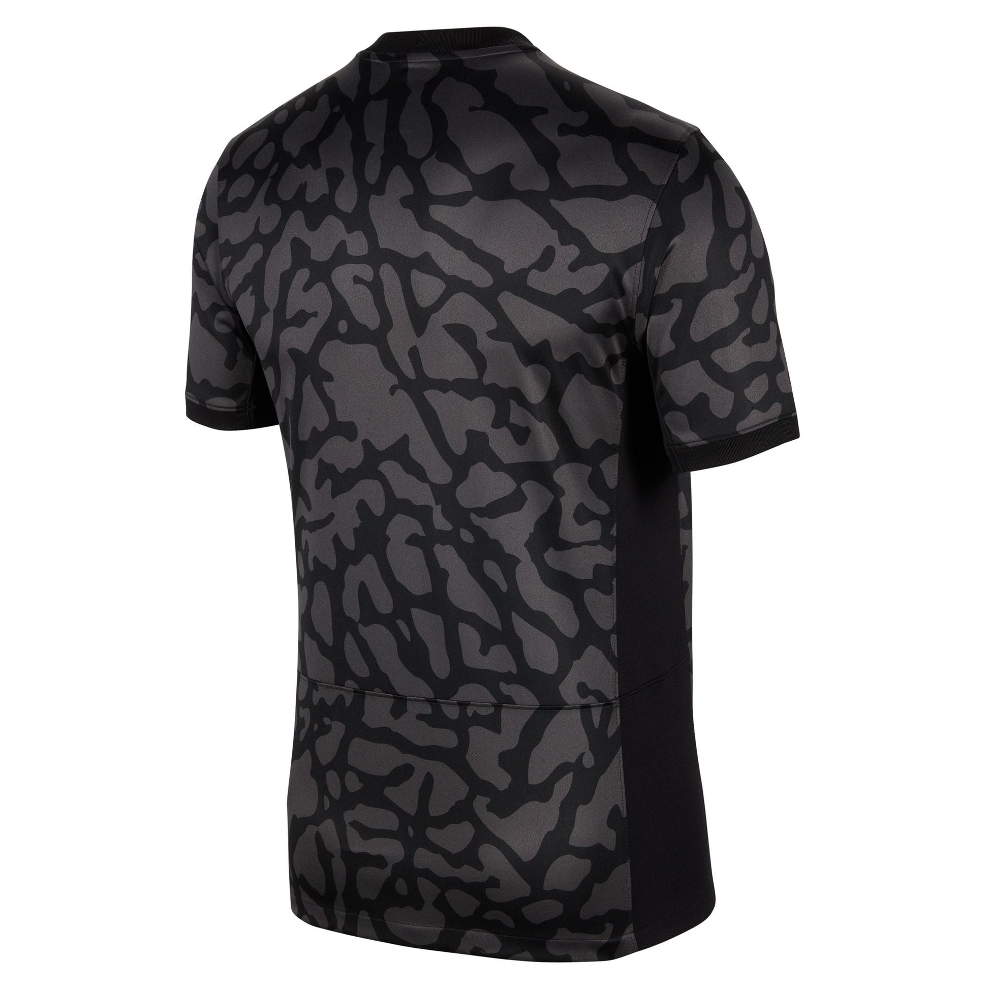 Icons collide with the 2023/24 PSG Third jersey. One of the most iconic clubs in the world meets one of the most recognizable patterns in streetwear—Jordan elephant print—to create a jersey that transcends the game. On the inside you'll find a hidden Paris logo with the Jumpman design included in the middle. Our Stadium collection pairs replica design details with sweat-wicking technology to give you a game-ready look inspired by Les Parisiens.