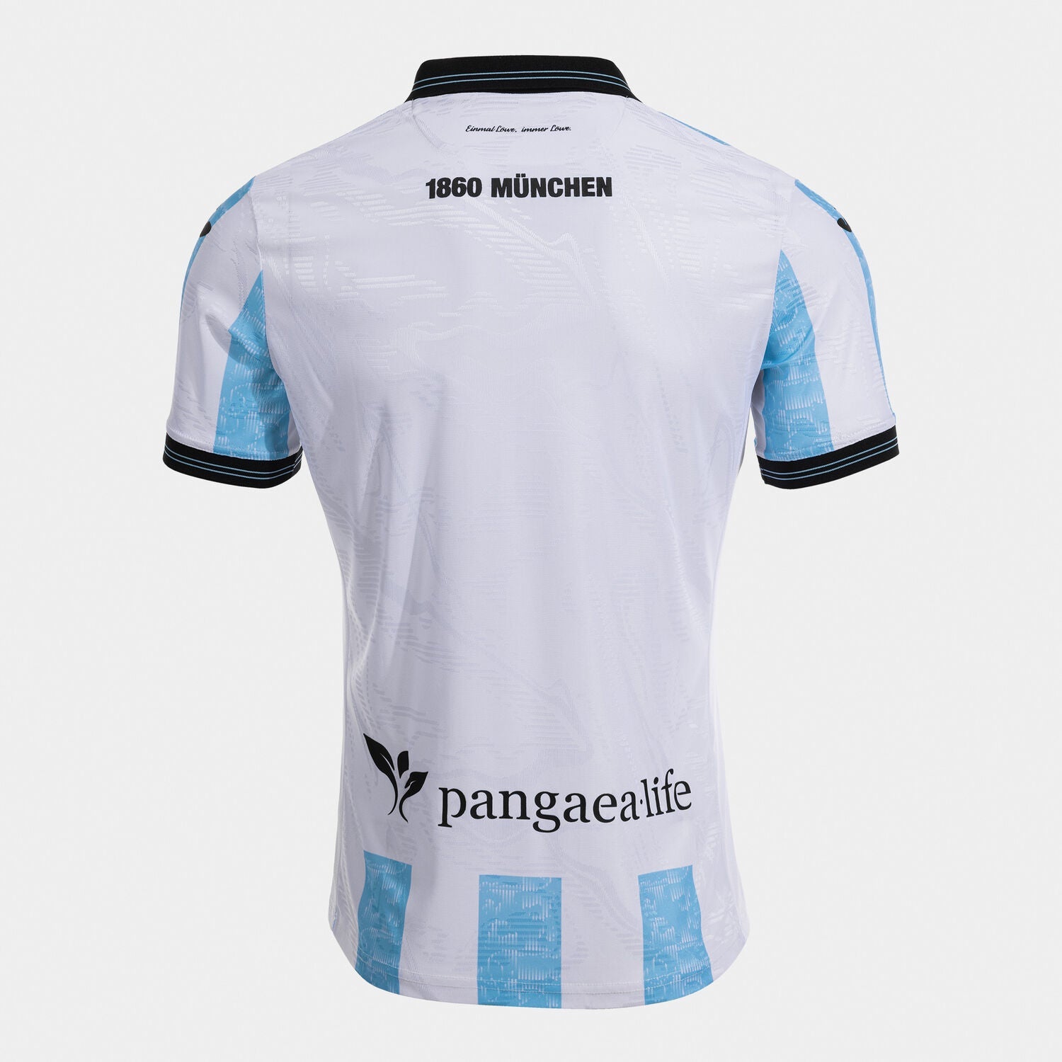 The home jersey for the 2025/26 season stands out with its modern design featuring light blue and white vertical stripes , the traditional colors of the Bavarian club. The retro-style collar adds a nostalgic touch, while the embroidered crest with the Bavarian lion on the chest symbolizes the courage and loyalty of the fans at the iconic Grünwalder Stadion, in the heart of Munich’s historic Giesing district.